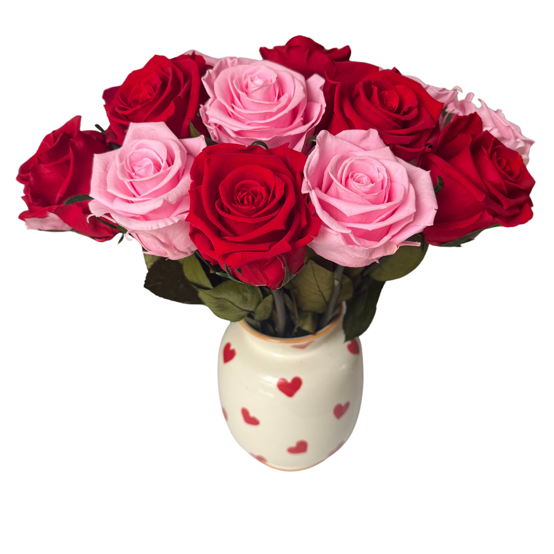• Displayed in a ceramic vase with hand-painted heart details